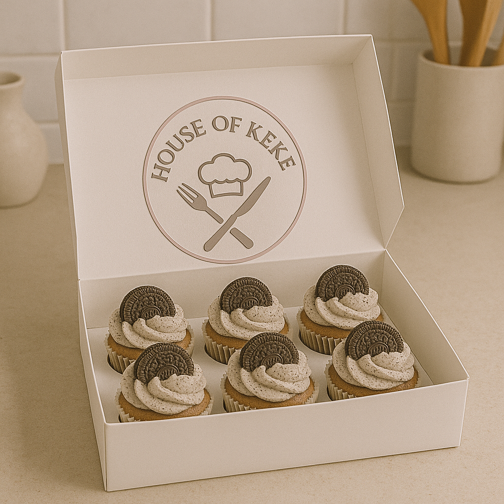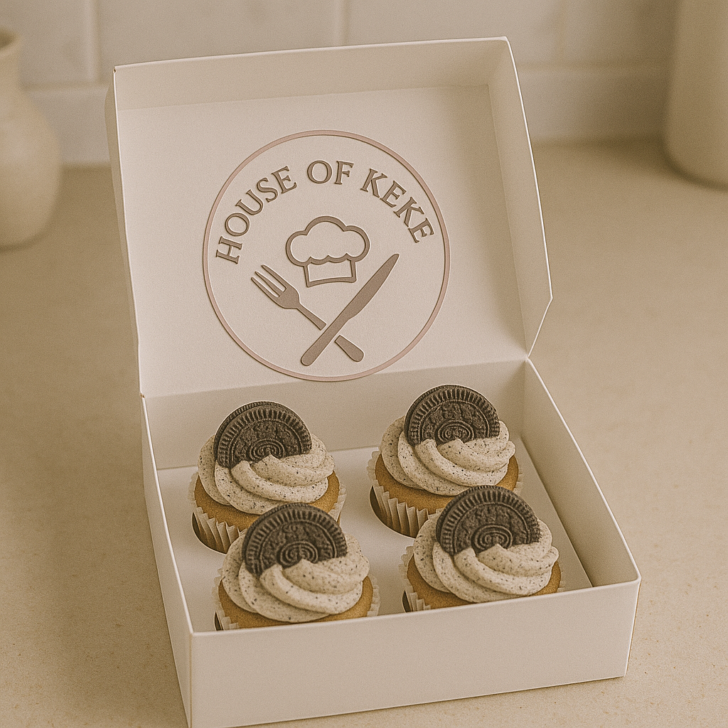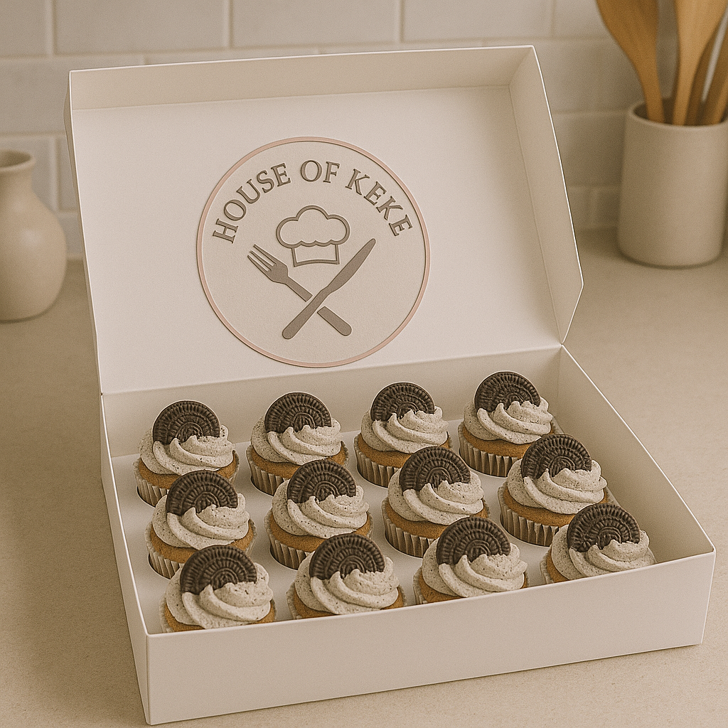Indulge in the magic of our Cookies & Cream Delight, a fluffy chocolate or vanilla Cupcake Crowned with a smooth Oreo-infused frosting and topped with a mini cookie.